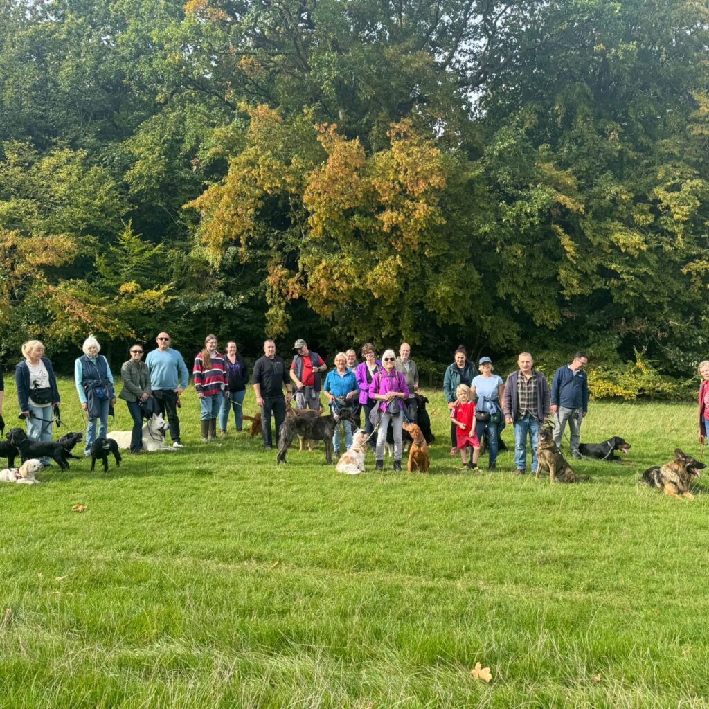 Although Hucking was unusually busy on 28th September, 25 dogs and their handlers enjoyed a lovely walk in the autum sunshine. The dogs had fun playing in the open spaces. displaying excellent recall at times when they had to go back on the lead. Then back to the dog friendly Hook and Hatchet to enjoy a drink in the garden!